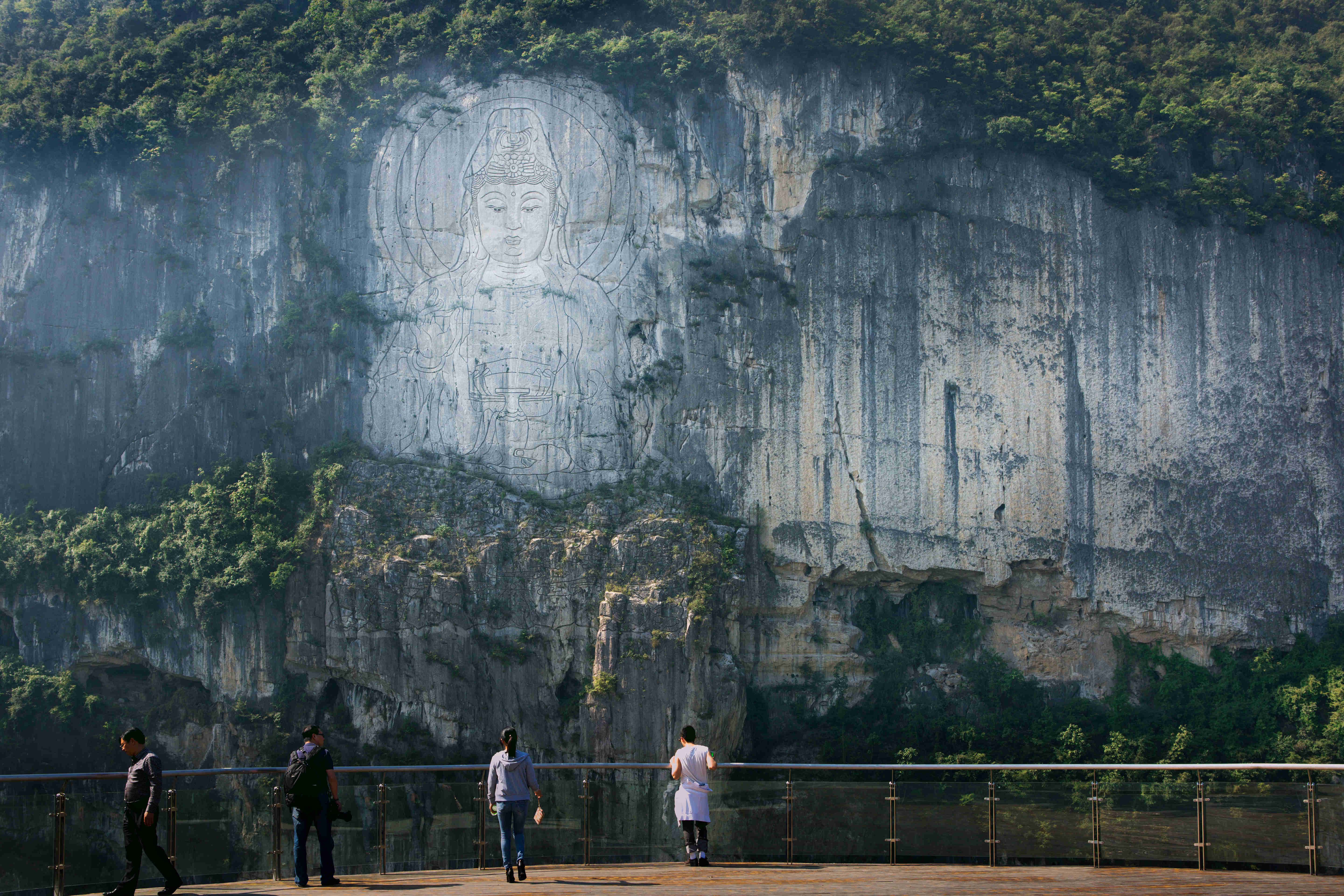 中國黔江城市大峽谷景區是以黔江區新、老城連接核心地帶與周邊景區組成,位于黔江新、老城連接核心地帶,有黔江中心城區的“肺葉”之稱,是全國乃至亞洲唯一在城市中的峽谷。城市峽谷橫跨七個地質年代,兼具喀斯特、礫石、丹霞等地貌特色,峽谷兩岸懸崖絕壁,森林植被茂密,溶洞密布,峽谷平均深度200米、垂直落差高達500米、長10公里,擁有高達123米世界最高巨幅摩崖觀音像,構筑成為大武陵唯一的極致峽谷體驗、極奇峽谷景觀、極美峽谷城市、極嘆峽谷文化的奇幻景區。